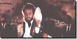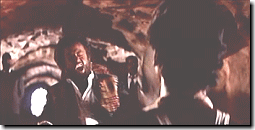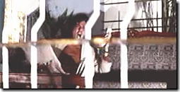 01秒20 | 対象物(者)との距離がさらに縮まったら さらに勢いを増すために、 顔をやや右斜めに傾け、 椅子の背もたれに 完全にもたれかかるようにします。 また口を大きくあけて 眉間にしわを寄せる表情を作ります。 |