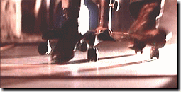 01秒00 | 対象物(者)まで、残り約2メートルと なったら、足を大きく上にあげます。 顔をやや下に向けると 足を出しやすくなります。 ここで勢い余って靴を飛ばしたり、 股関節を痛めてしまわないよう 充分ご注意ください。 |