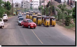 ![]() ▲クルマとリクシャーのチェイス! あえなく捕まるリクシャー・・。 |