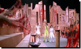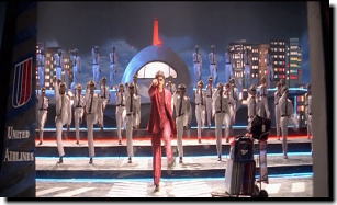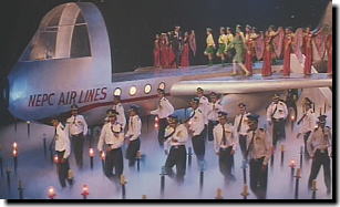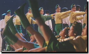 ![]() ▲スチュワーデス風お姉さんによる 見事にそろった足上げ。 |