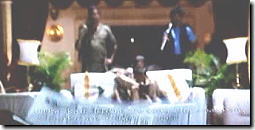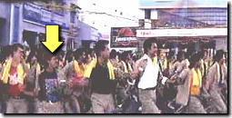 | ▲↑の矢印の3人だけ、なんで黄色タオルをしていないのでしょうね? やっぱり1ヶ月に100〜200しか稼げないリクシャーワーラーには 黄色タオルの購入も難しいのでしょうか?それとも単に忘れただけ・・? でもそれにしては、最前列(左から4人目)と、ラジニの両隣という 目に付く位置に配置されているのが不思議。 と思っていると、その謎を解く鍵を発見! ↑の右側画像の人は、この人と同一人物ですよね? ![]() この時は静観して踊っていなかったということは、 途中から踊りに参加した、と捉えていいですよね。 マニカム率いる軍団の踊りが素晴らしくて、黄色タオルしていなかったこの人たちまでが 踊りに「飛び入り参加」したということなのでしょう。 となるとあとは最前列左から4人目の人だけが疑問。 |
