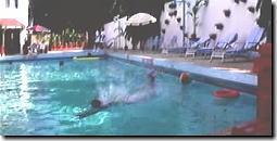 | バーシャのパンフによりますと、インドではプールや海に行っても 泳いだりする人は少ないとのこと。 ましてやプールサイドから飛び込むなんていうのは、ほとんどナシ。 ということで今日のネタはポッポさんより、飛び込みシーンの場面 |