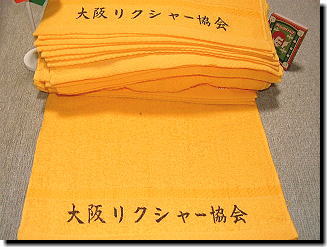 ![]() ▲大阪リクシャー協会の銘が入った お洒落な黄色タオルは、劇場にて販売! |
