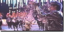 ★↑の4発を放ったあとは、次の「クラッカー発射部分」まで1分20秒ほどあるので、 しばらくミュージカルシーンを楽しんでいてOKです。 ただし余裕のある方は、下のようなアクションを、ラジニにあわせて行ってもいいでしょう。