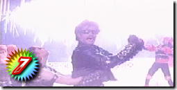 7秒 | BOM!! (両手を水平方向に伸ばした後 ゆっくり首もとへ腕を 引き寄せる。 その後、左水平方向に 両腕を2回にわたって 気合を入れ大きく伸ばす) |