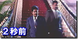 クラッカーは、この曲中【3セクション・合計8回】にわたって使用しますが、 連続使用をしなければいけない箇所もあるため、 当ページでは、役割を「パートA」「パートB」の2つに分けてご説明しています。 (「パートA」の方は合計5発・「パートB」の方は合計4発、クラッカーを発射します。) それでは、【第1セクション】から順にご説明していきましょう。 【第1セクション】は、飛行機が登場し、パイロットラジニが踊っている場面の直後が スタート位置となります。 ↓の画像のように、マニカム(ラジニ)とブリア(ナグマ)が同時に腕を振り下ろした後に 場面が変わり、1発目の発射となります。 場面転換が早いので、特に「パートA」の方は遅れないよう準備してください。 後は↓の表にしたがって、それぞれ2発ずつ、計4発発射します。