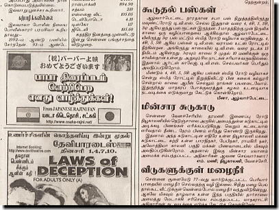 ![]() ▲8月15日付けの新聞は、本誌に加えて 「バーバー特集・別刷り」が発行されているものが多くありました。 ラジニ様の反対派「PMK」グループが、公開日に劇場を襲撃したせいもあって かなりの紙面を使って「バーバー」が特集されておりました。 |