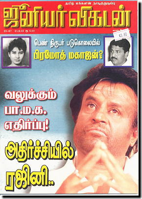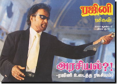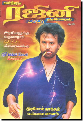 ![]() ▲「ヴァンナッティライ」誌 バーバーポーズを突き出す パワフルなラジニ様。 迫力満点です!! |
