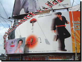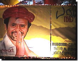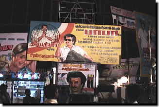 ラジニ様の待ちに待った新作公開、ということで 現地チェンナイは、街自体が異様な盛り上がりを見せています。 しかし、今回はラジニ様の奥様「ラタ様」が、 バーバーのロゴ・写真等を勝手に使うことを厳しく規制したため 街中の「バーバー看板」などは、その盛り上がりに相当するほどの数は出ていませんでした。 しかしそれでも、チェンナイのメインストリート「アンナサライ」を中心に 大小いろいろな種類の看板を発見することができました。 ここからは、そんな「バーバーに燃えるチェンナイの街の様子」をレポートしたいと思います。 |