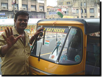 ![]() ▲リクシャー運ちゃんのほとんどは ラジニ様の熱狂的なファン。 前面ガラスにもバーバーシールが。 |