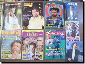 ![]() ▲現地の雑誌はラジニ様一色。 中には「別冊バーバー特集」や バーバーポスター付録付のものまで。 |