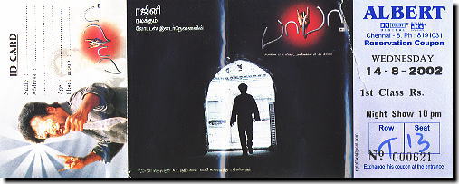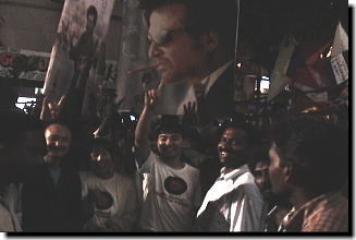 ラジニ様の3年ぶりの新作「バーバー」は、インドの独立記念日(Independence Day)にあわせ 2002年8月15日より一般公開がスタートしました! しかし、星占い(インドでは結婚などを含め重要な行事の際に、必ずと言っていいほど星占いをします) の結果、その日は「あまり良くない日」とされたこともあって、 公開日の1日前である8月14日の深夜に、映画関係者やマスコミ関係者を招いて いくつかの映画館で大々的に「試写会(プレビューショー)」が行われました。 大阪発・ラジニネットワークでは、ラジニ様のマネージャー殿にお願いして この「試写会」への潜入に成功! その時の模様を、ビデオと写真を交えてご紹介していきたいと思います!! |