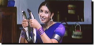 | 駅のホームを歩くバーバーと仲間たち。 仲間の1人がどこかへ行ってしまうようで、その見送りにみんなで来たようです。 さすがは人気者バーバー、ホームでも何人もの人から挨拶されます。 旅立つ仲間が乗る車両の前に着いた時、バーバーはその仲間のカバンを渡そうとします。 が・・。 タイミングよく(笑)そこに通りかかった「チャムンデシュワリ」(マニーシャ・コイララさん)のアタマに そのカバンをドカッと乗っけてしまうのでありました。 その彼女を見て、バーバーはちょっとドキドキ。 「ちょっと、ちょっと、ちょっと!!カバンを早く降ろしてよ!!」「謝りなさいよ!」 カバンを乗っけられたチャムンデシュワリは激怒。 それを聞いていたアンナーマライも激怒、 「謝れ?この人を誰か知っているのか!?チェンナイを統治しているバーバーだぞ!!」 しかしバーバーは落ち着いて 「すまん。俺のミスだ。」と一旦謝ります。 しかし、「チェンナイはおせっかいな変人が多いって聞いていたけど、こりゃ本当ね。」 というタミルを馬鹿にしたようなチャムンデシュワリの発言には、もちろん我慢ならず。 バーバーの仲間たちも集まってきて、彼女を取り囲みます。 彼女の母親は「早く謝りなさい」とチャムンデシュワリを諭しますが、 彼女はいやいや「ソーリー」と言って立ち去ります。 「生意気な女だ!!」 バーバーの仲間たちが口々にそう言う中で、バーバーは最後に一言。 「俺は気に入った!」 場所は変わってバーバーの家の付近。 ここに美しい3姉妹のいる家族が引っ越してきました。 ちょうど今、荷物を家に運んでいるところです。 その綺麗な姉妹を見て、アンナーマライはニヤニヤ。 「カバン運び、お手伝いしますよ〜ん!」 バーバーの他の仲間達も、みんな鼻の下を伸ばして集まってきます。 そこへバーバーも到着。順にバケツリレーのようにカバンを渡していくと・・。 またまたカバンが女性のアタマの上に。 しかも顔を見るとさきほど駅で会ったチャムンデシュワリではありませんか! そう、バーバーの家の向かいに引っ越してきたのは チャムンデシュワリを含む3姉妹とその父親・母親だったのです。