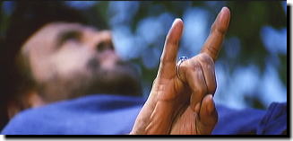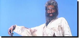 | 路上で今日も何をすることもなく、タバコを吸いながら横になっているバーバー。 そこに、お寺の象を従えた「お祈りの行列」が通りかかります。 いつのまにか、その行列の「お祈りの合唱」に、我を忘れるほど耳を傾けるバーバー。 なぜか手が自然に動き、「バーバーのポーズ」をカタチづくるのでした。 さらにお寺の象が、バーバーのもとへやって来て、バーバーの顔に鼻を近づけ祝福します。 それを見ていた母親と叔父は、"あの日"サドゥー達に言われたお告げを思い出すのでした。 「この子は偉大な人になる・・。」 バーバーは結局、タバコの火が手に近づいたところでやっと我に返り、あたりを見回します。 道の反対側では、チャムンデシュワリの父親もこの光景を見ていました。 前のヨガの知識のこともあり、父親は「バーバーは普通の人じゃない。」と察知します。 すぐさまバーバーの家に行き、バーバーの母親と叔父に次のように頼むのでした。 「私はバーバーのホロスコープ(星占い)が見たいのです。」 最初母親はためらいましたが、チャムンデシュワリとバーバーが結婚してくれたら・・ という想いもあって、ホロスコープを見てもらうことを承諾します。 「大丈夫。お金はもちろんいりません。 私がホロスコープを調べて悪くなったことはありません。」 チャムンデシュワリの父親はそう言って、バーバーのホロスコープを調べ始めるのでした。