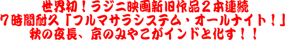 | 10月7日<ラジニカーント・ダブルマサラナイト>in京都みなみ会館 ★ 「オールナイト券」お申し込みフォーム ★ |