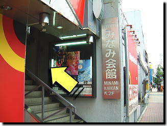▲看板のところにある階段を上がり 2階までお越しください。 無事「京都みなみ会館」に到着です。 |