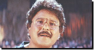 ★借金取り パダヤッパで「影響力のある金貸し」として 取立てをしていたこのオジさん、 ムトゥでもやっぱり「借金取り役」で出てます。 独特の早口は 一度聞いたら忘れられません。 |