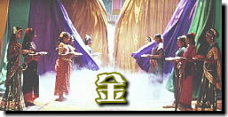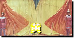 この後、王様役の馬ヅラ男が「ならばその姫に会わねば」「会わねばならぬ!」 などと言ったところで、一旦幕が閉まります。 そして、ミラーボールが映し出された後、以下のような順で幕がどんどんと開いてゆきます。 順番を記憶して、紙吹雪スタートに備えてください。