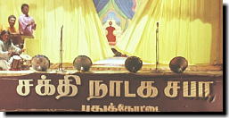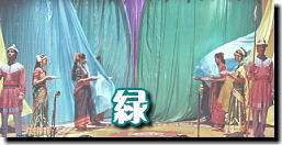 | ★紙吹雪は、ラジニ様&ミーナさん登場場面で複数回使用します。 その中でも「メイン」となるのは、ランガ(ミーナ)さん登場場面。 ここでは、その場面のタイミングを逸しないようにするため、 準備段階から幕の開き方→紙吹雪スタート場面までを、順を追って画像付きで解説いたします。 紙吹雪使用箇所であるランガ(ミーナ)さん登場場面は 映画が始まってから約24分後にあります。 以下のように「シャクティ劇団」の公演場面がスクリーンに登場したら、紙吹雪を準備しましょう。