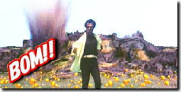 1秒 | BOM!(煙幕) 壺を割った瞬間に 画面の色が変化し、 後から怪しげな煙幕が 出てきますので、 ここでまず1発目を発射!! |