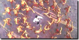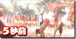 ←の画像のように 「人間やぐら」を登り終え 壺を割る姿勢に入るまでに クラッカーを3個以上手に持ち かまえてください。 |