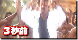| ★パダヤッパでは、絶対に欠かすことのできないアクションが 「しがなりぽっとぅ〜♪」曲中に行う「パンっ、パンっ!」です。 これは、パダヤッパ(ラジニ)がカッコ良く宙返りをキメたあと、 両手を叩いて「パンっ、パンっ!」とイイ音を出すアクションで、 是非とも皆様にあわせていただきたい部分です。 ただ、サントラに入っている曲とはややタイミングが違うなど、 難しい面もありますので、ここで詳しく解説することにしたいと思います。 ![]() ▲「パンっ、バンっ!」のアクションは、最初の曲「しがなりぼっとぅ〜♪」の 間奏部分(2回目の間奏部分)で行われます。 ↑のような「グラサンに何か写ってんで〜」なラジニ様が出てきたら 両手に何も持たないようにして、準備を整えてください。 その後は↓の表にしたがって、一斉「パンっ、バンっ!」してください。