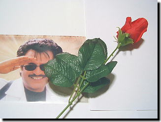 パダヤッパでは、最新CG技術を駆使し ラジニ様が突如子供に変化したりする 場面が登場します。 せっかく踊りをマスターしても、 このシーンはなかなか再現できません。 そこで、すばやくCGの場面にも対応できる 「お面」を製作、販売を開始しました! ●価格:10円(税込み) ●販売日:7月8日まで随時販売 ●注意事項:街中を、このお面を付けたまま 歩かないでください。 ※絵柄はかなりガタガタです。スイマセン。。 |