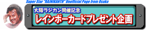 | ★4月14日(土)、、待ちに待ったラジニカーント公式ファンクラブのイベント【ラジカン6】が 大阪・心斎橋のインド料理レストラン「ナマステ」にて開催されます!! このイベントに私も今回初参加させていただくことになりました。 ラジニファン超初心者の私が、どこまで参加者の方々のお話についていけるか不安もありますが、 「カリスマラジニファン」の皆様とお会いできるのが本当に楽しみです! いつもは、ファンクラブのBBSなどを拝見しているだけだったのですが、 これを機に「私も何かお役に立てないだろうか・・・」と考えまして、 私の勤務先で販売しております「レインボーカード(500円券)」を、 売店にお越しになった方にプレゼントすることにいたしました。 しかもただのカードではありません。絵柄はもちろん「ラジニ様」!! レインボーカードは、地下鉄や関西の私鉄のほとんど(JRは除く)で使える便利なカードで (関東の「パスネット」のようなものです)、 地下鉄「大阪(梅田)駅」から、ラジカン6の会場最寄り駅「心斎橋駅」まで、 この「ラジニ様カード」を使って、切符を買わずにそのまま改札機にカードを入れるだけで まるでラジニ様の敬礼のごとくスピーディーに電車にご乗車いただけます。 「ラジカン6」にご参加の方で、大阪駅(私鉄・地下鉄は梅田駅といいます)に お立ち寄りになられます方は、是非私の売店にお越しいただきまして 「ラジニ様レインボーカード」を使って、電車賃タダでお得に心斎橋へ向かってください。 カードの仕様・カード配布時間・売店の場所等は↓に記載しております。 皆様のお越しをお待ちしております! |